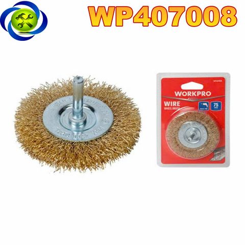 | Bàn chải bánh xe dây uốn, kích thước: 64mm với trục 6.3mm Workpro - WP407008 |