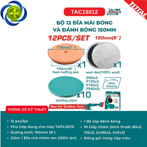 Bộ 12 đĩa mài bóng và đánh bóng 150mm TOTAL TAC15012