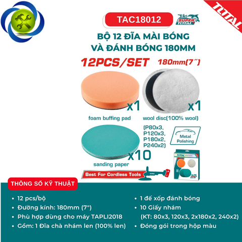 Bộ 12 đĩa mài bóng và đánh bóng 180mm TOTAL TAC18012