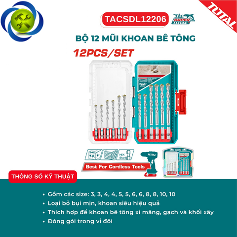 Bộ 12 Mũi Khoan Bê Tông TOTAL TACSDL12206