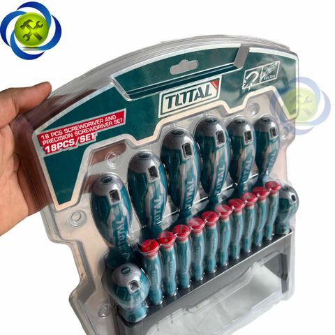 Bộ 18 tua vít TOTAL THT250618 gồm vít thông dụng và vít điện tử có chân đế