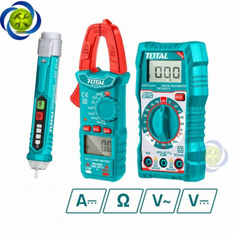 Bộ 3 Dụng Cụ Kiểm Tra Điện TOTAL TMT43028 (Ampe kìm , Đồng Hồ Đo Điện, Bút Dò Điện)