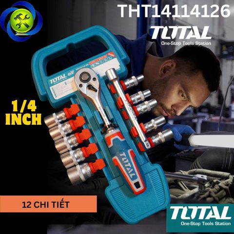 Bộ Cần Tự Động Và Khẩu 1/4 TOTAL THT14114126 Gồm 12 Chi Tiết (5-14mm)