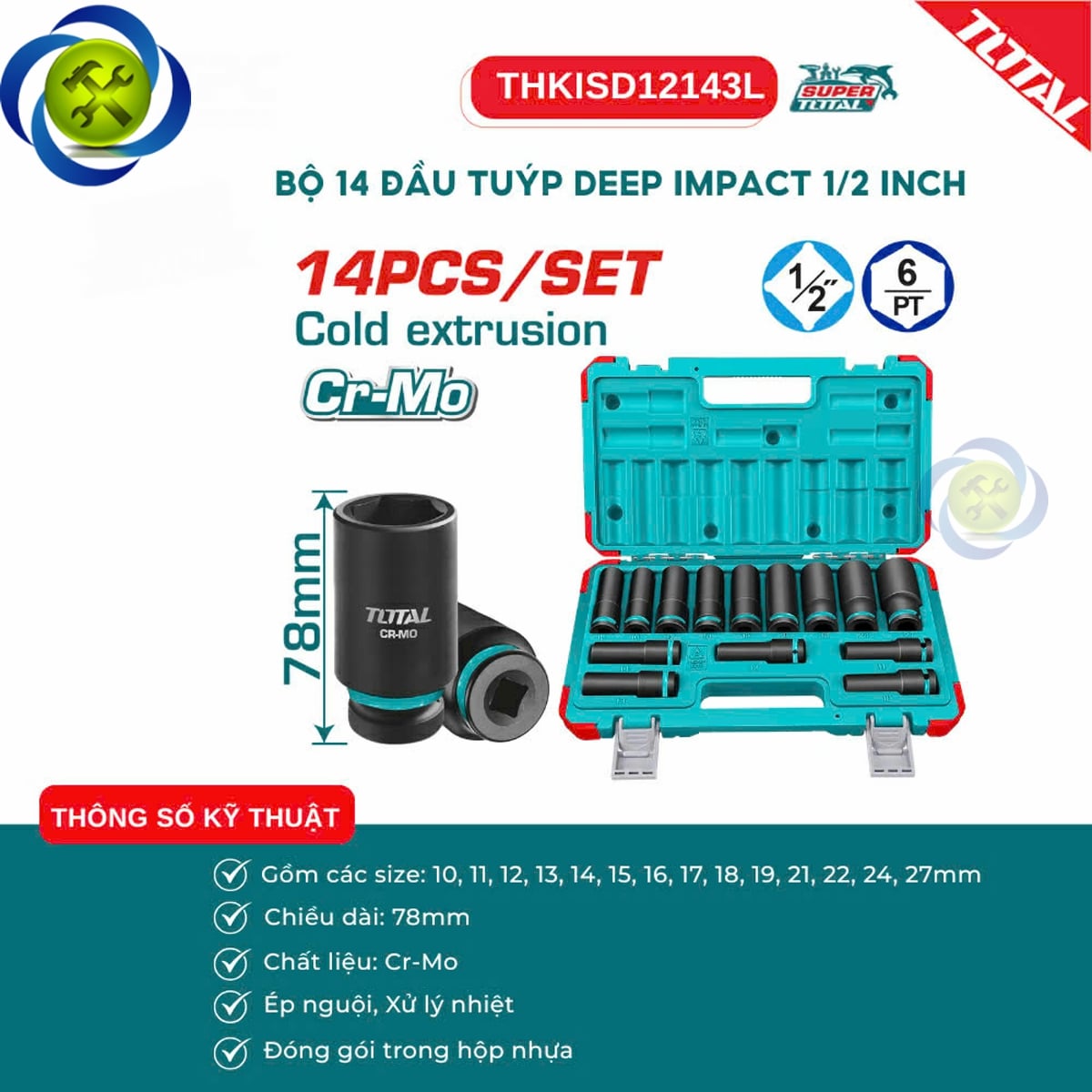 Đặc điểm nổi bật: Thiết kế sâu, dùng cho bu lông dài hoặc khu vực sâu; phù hợp máy siết bu lông/ốc vít impact.