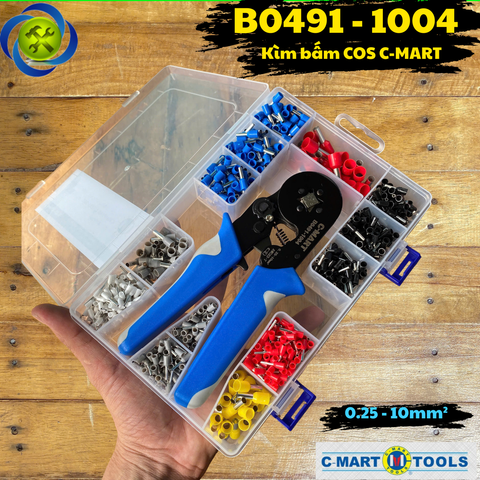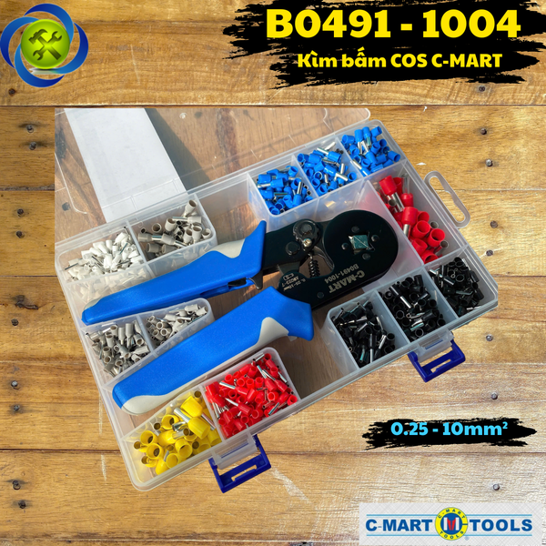 Kìm bấm cos vuông 4 cạnh C-MART B0491-1004 tự điều chỉnh,1200 đầu cos đủ loại cos ống tròn cos pin (SELF ADJUSTING CRIMPING PLIERS SET)