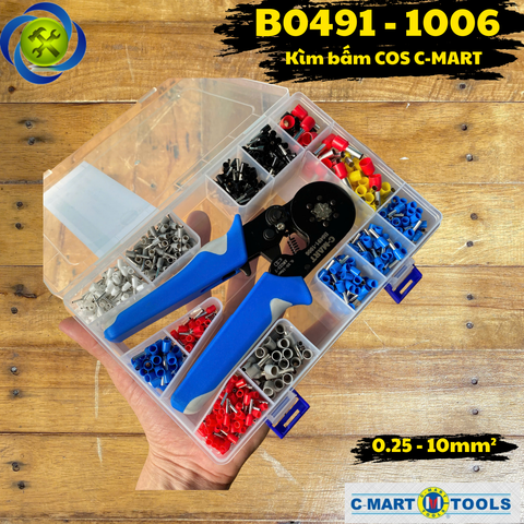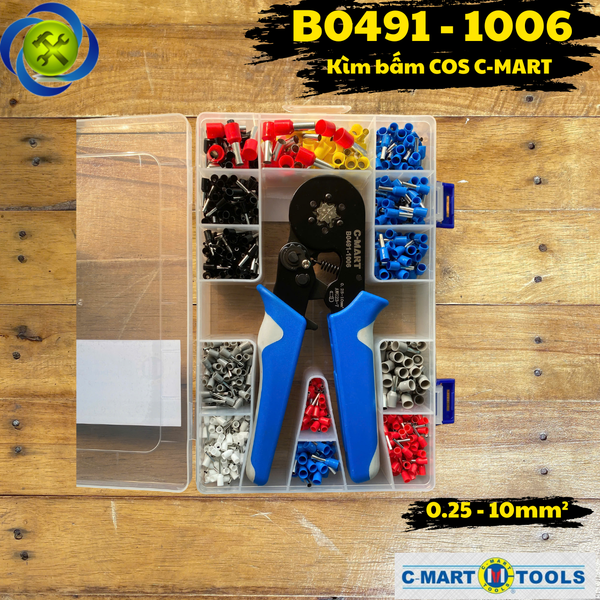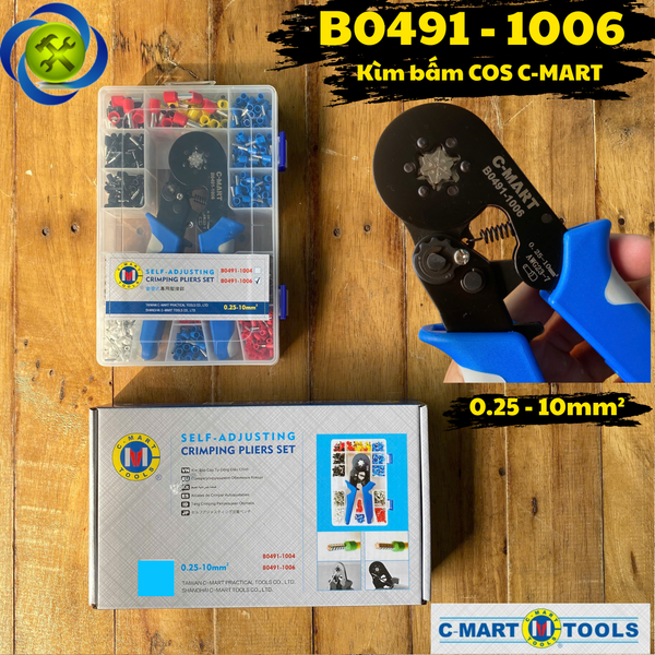 Kìm bấm cos 6 cạnh C-MART B0491-1006 tự điều chỉnh,1200 đầu cos đủ loại cos ống tròn cos pin (SELF ADJUSTING CRIMPING PLIERS SET)