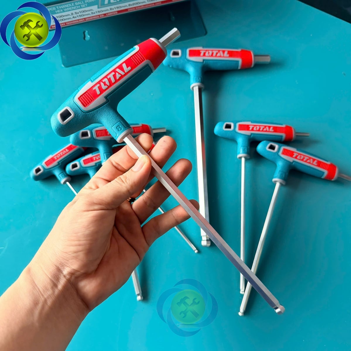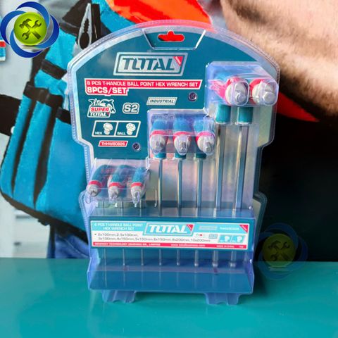 Bộ Lục Giác Chữ T 8 Chi Tiết Đầu Bi Total THHW80826 (2-10mm) Đế Sắt• Bộ 8 cây lục giác hai đầu chữ T