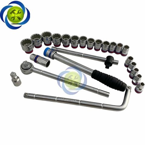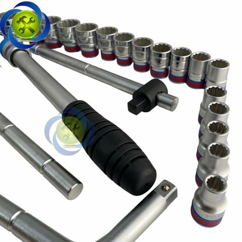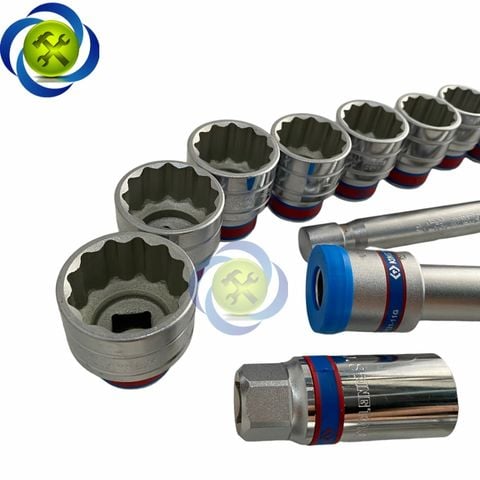 - 18 đầu tuýp 1/2" đầu 12 cạnh: 3/8, 7/16, 15/32, 1/2, 9/16, 19/32, 5/8, 11/16, 3/4, 25/32, 13/16, 7/8, 15/16, 1,
