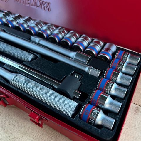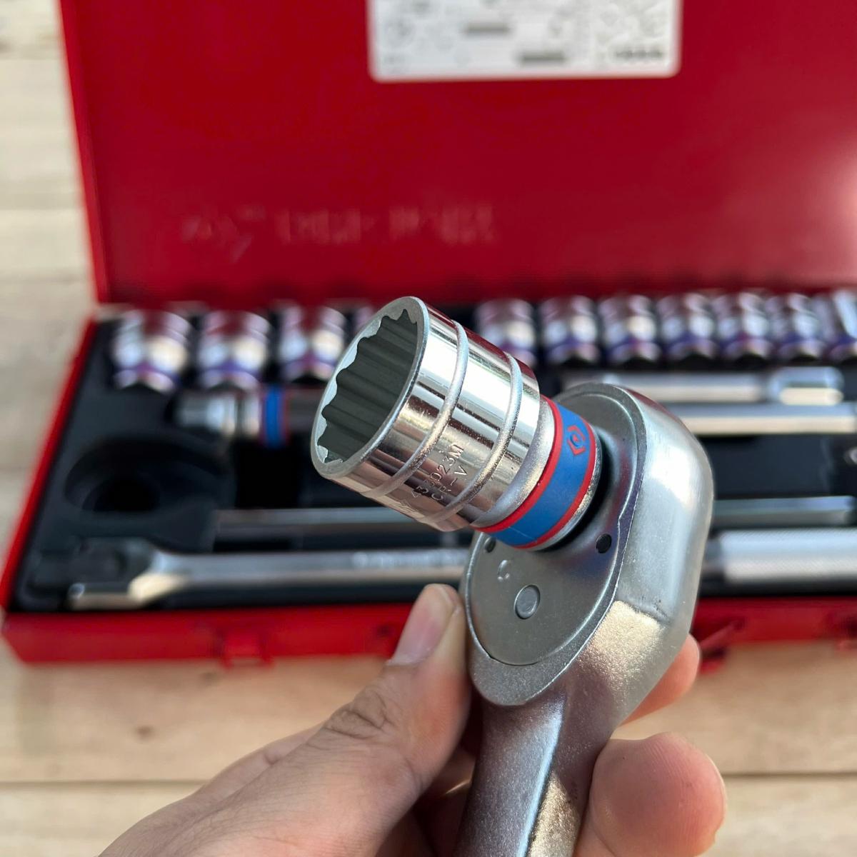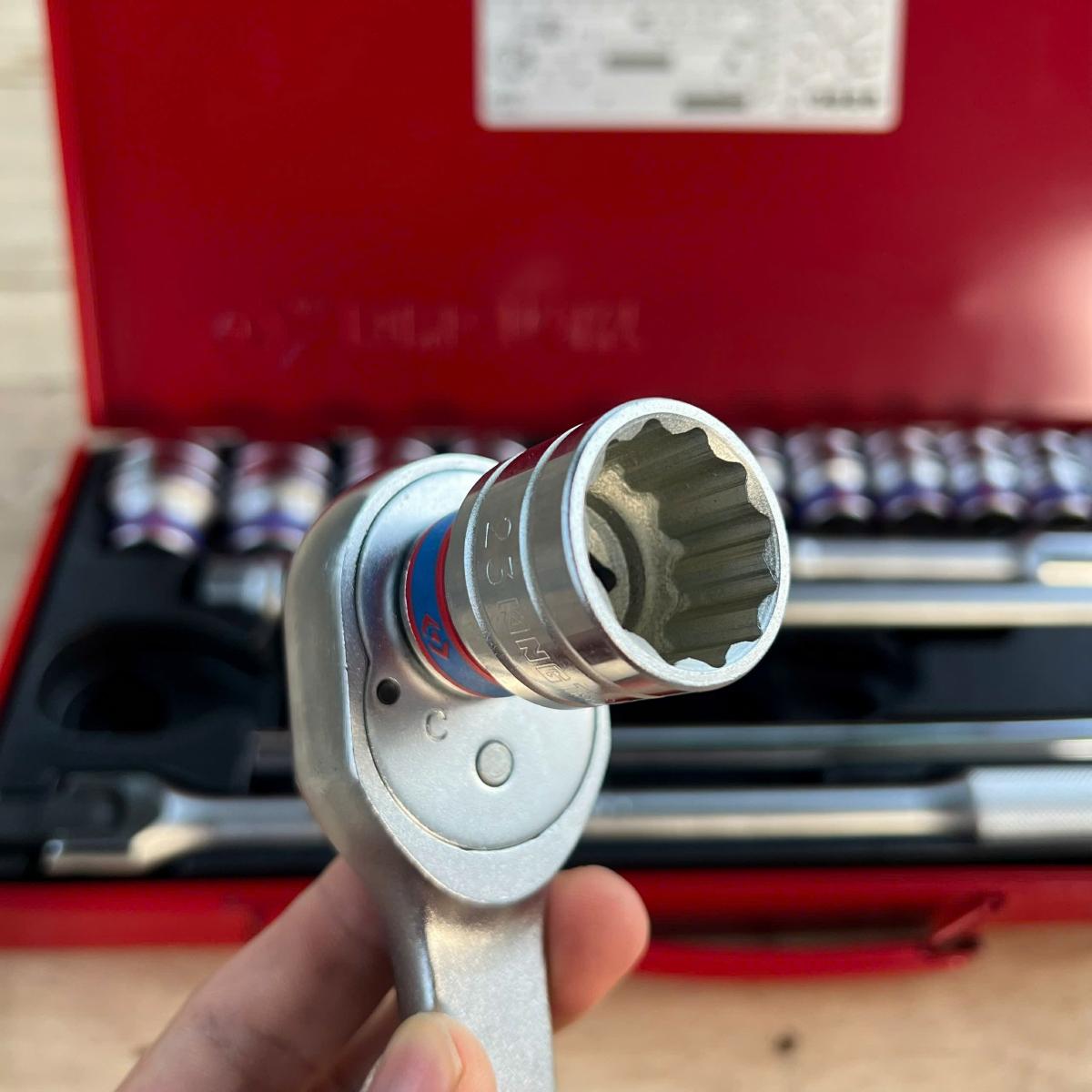 + 18 đầu tuýp lục giác (bông 12 cạnh): 10, 11, 12, 13, 14, 15, 16, 17, 18, 19, 20, 21, 22, 23, 24, 27, 30, 32mm