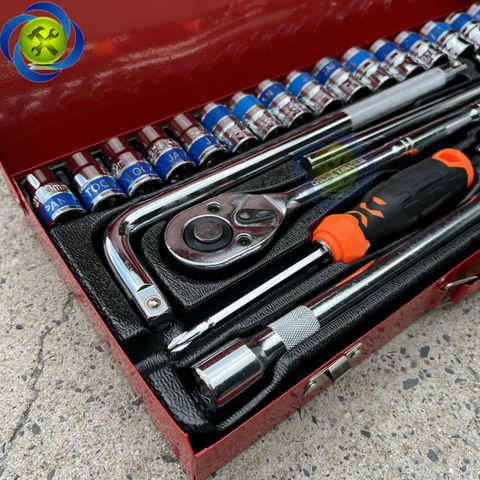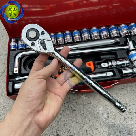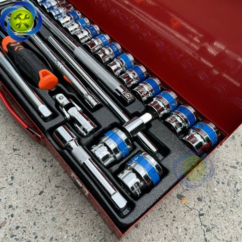 - 18 đầu tuýp 1/2" cỡ: 10mm,11mm. 12mm, 13mm, 14mm, 15mm, 16mm, 17mm, 18mm, 19mm, 20mm, 21mm, 22mm,23mm, 24mm, 27mm, 30mm và 32mm.