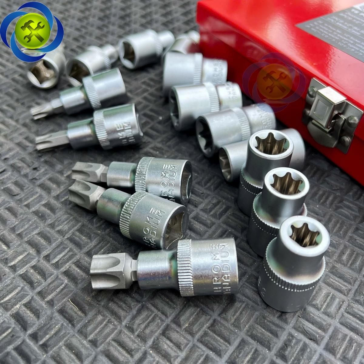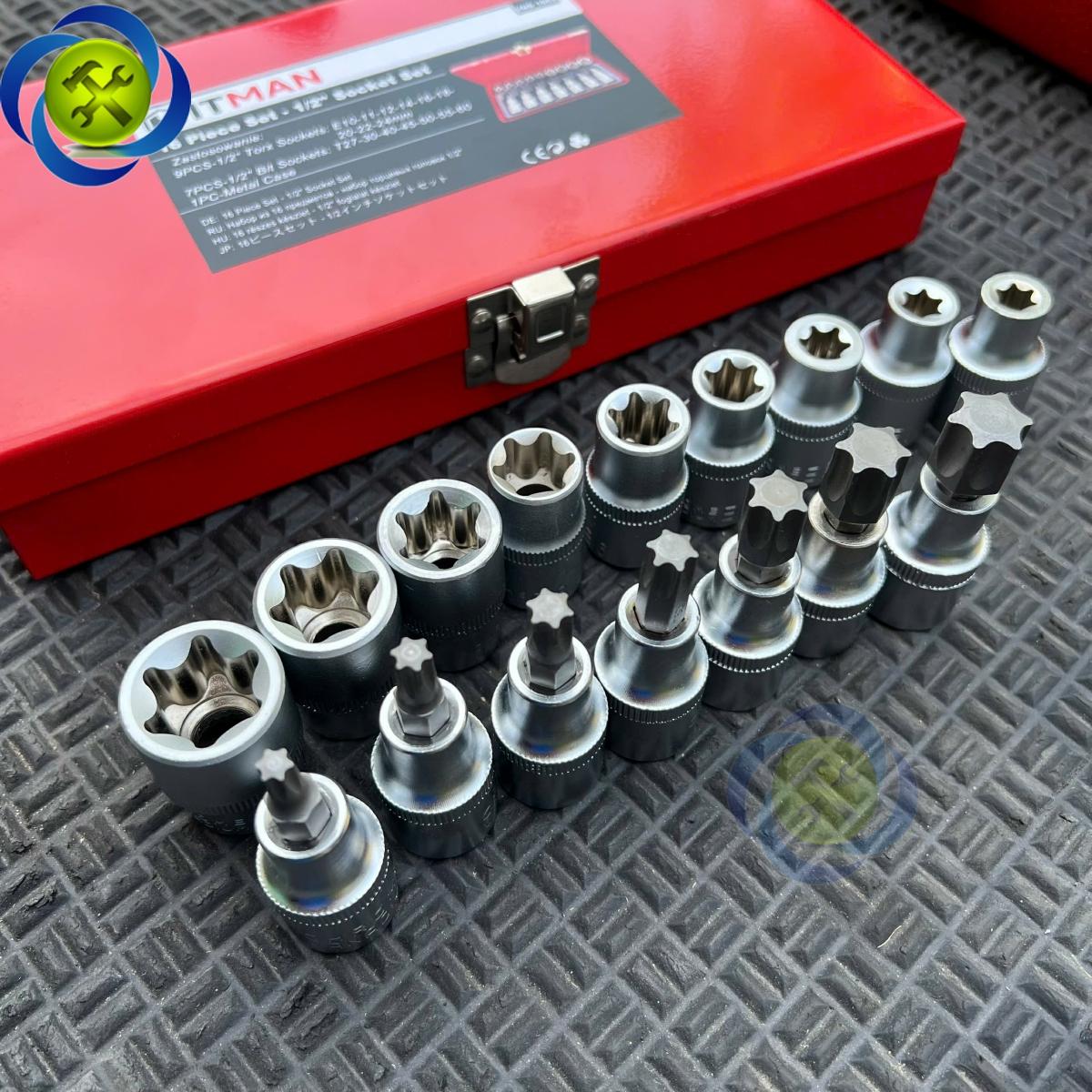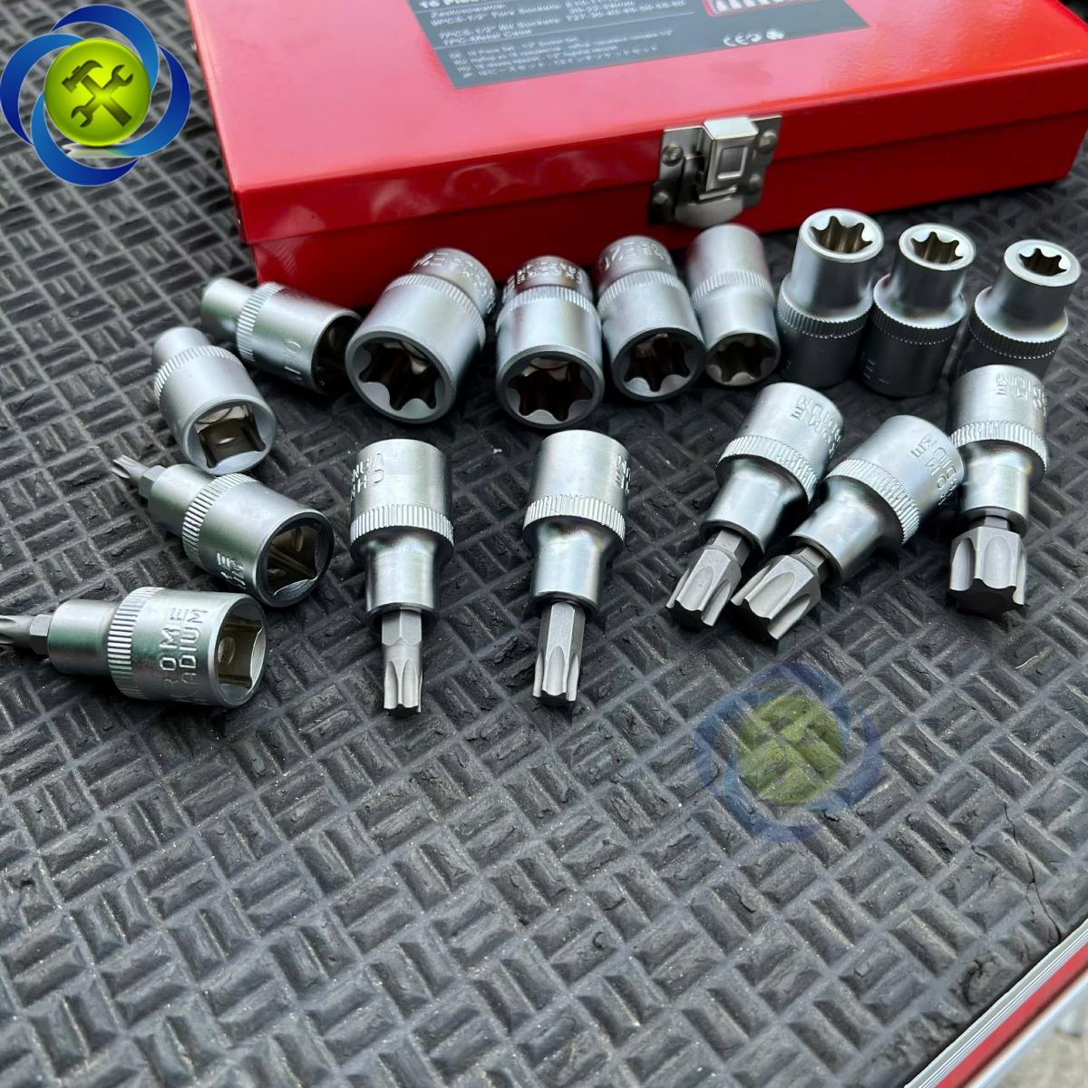 Bộ tuýp đầu E (E10- E24) và tuýp sao (T30 - T70) HITMAN HM1002 có 16 chi tiết