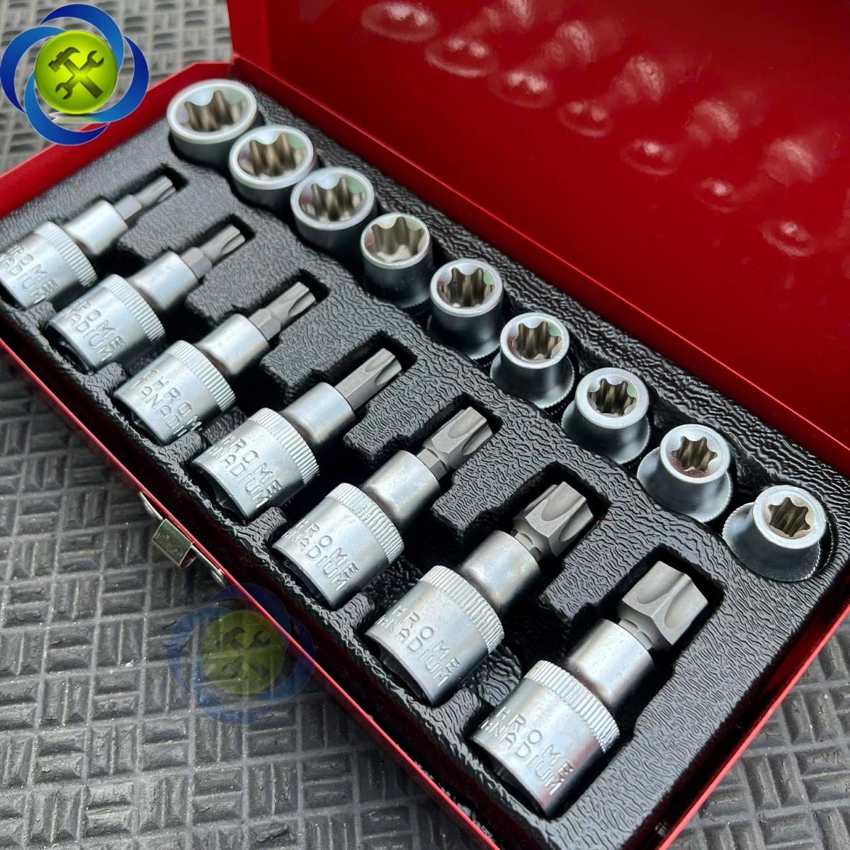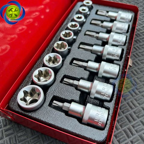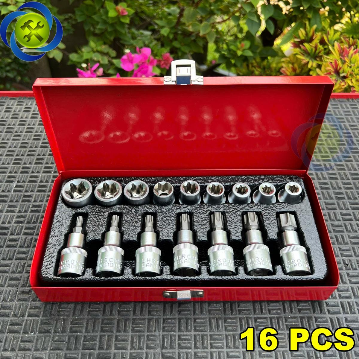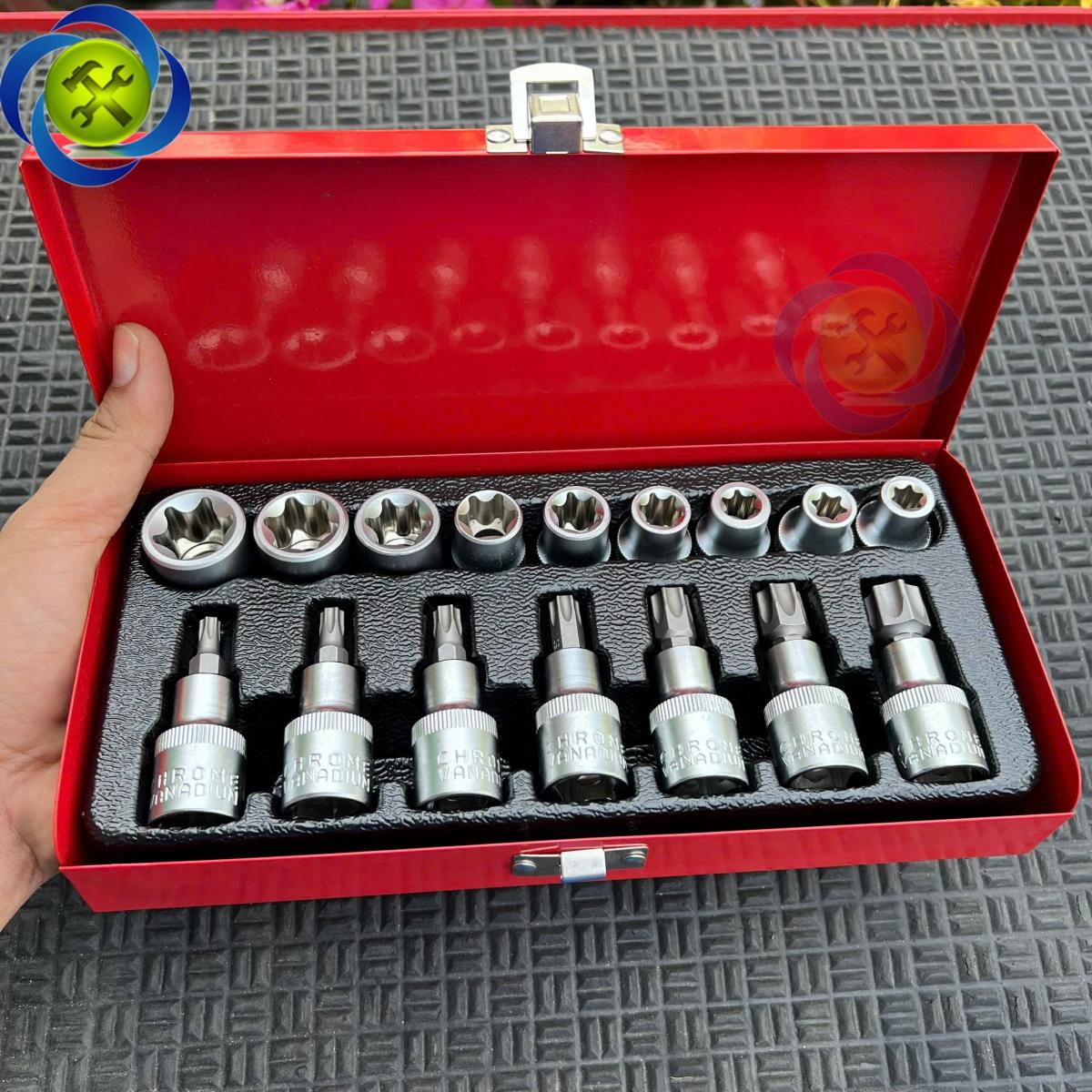 Bộ tuýp đầu E (E10- E24) và tuýp sao (T30 - T70) HITMAN HM1002 có 16 chi tiết