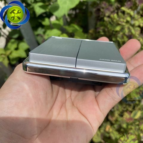 Công tắc đôi 1 chiều AKKO STAR 04058 màu xám kim loại