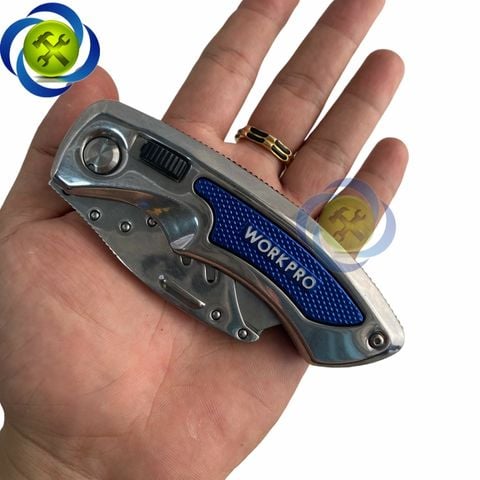 - Dao gấp gọn tiện ích WORKPRO W011010 là dòng sản phẩm mới của Workpro. Dao có thiết kế thông minh, cơ chế thay lưỡi tiện ích có thể thu vào, mở ra dễ dàng. Dao được làm bằng chất liệu thép không gỉ và chống trượt. Đây là sản phẩm tuyệt vời cho những tín đồ DIY trong nhiều ngành nghề khác nhau.