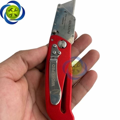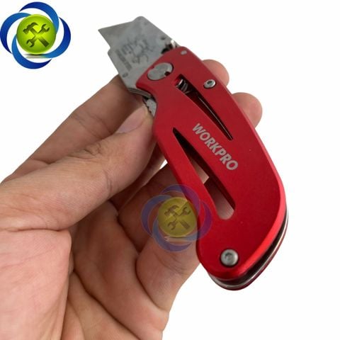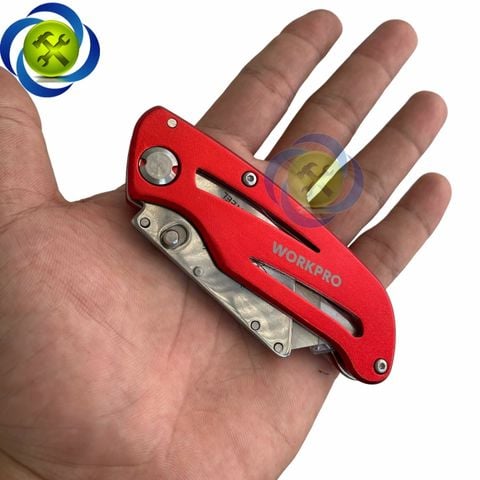 Dao rọc cáp Workpro WP211003 gấp gọn thân nhôm màu đỏ