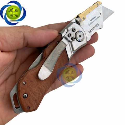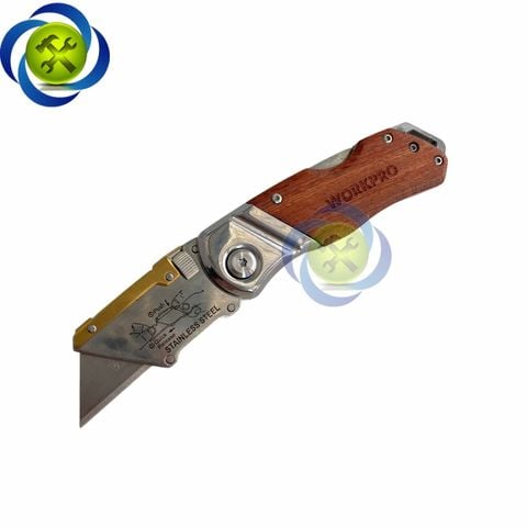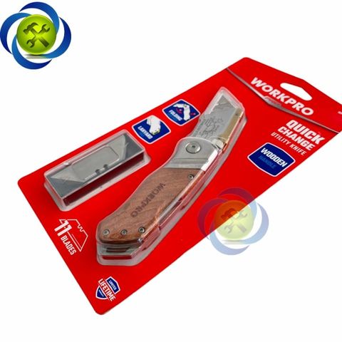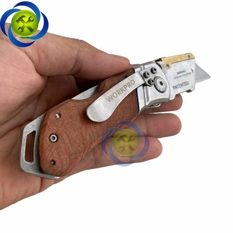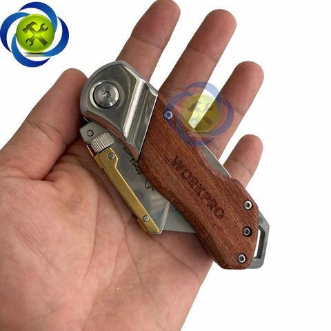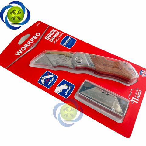 Dao rọc cáp Workpro WP211014 gấp gọn thân gỗ kèm 10 lưỡi