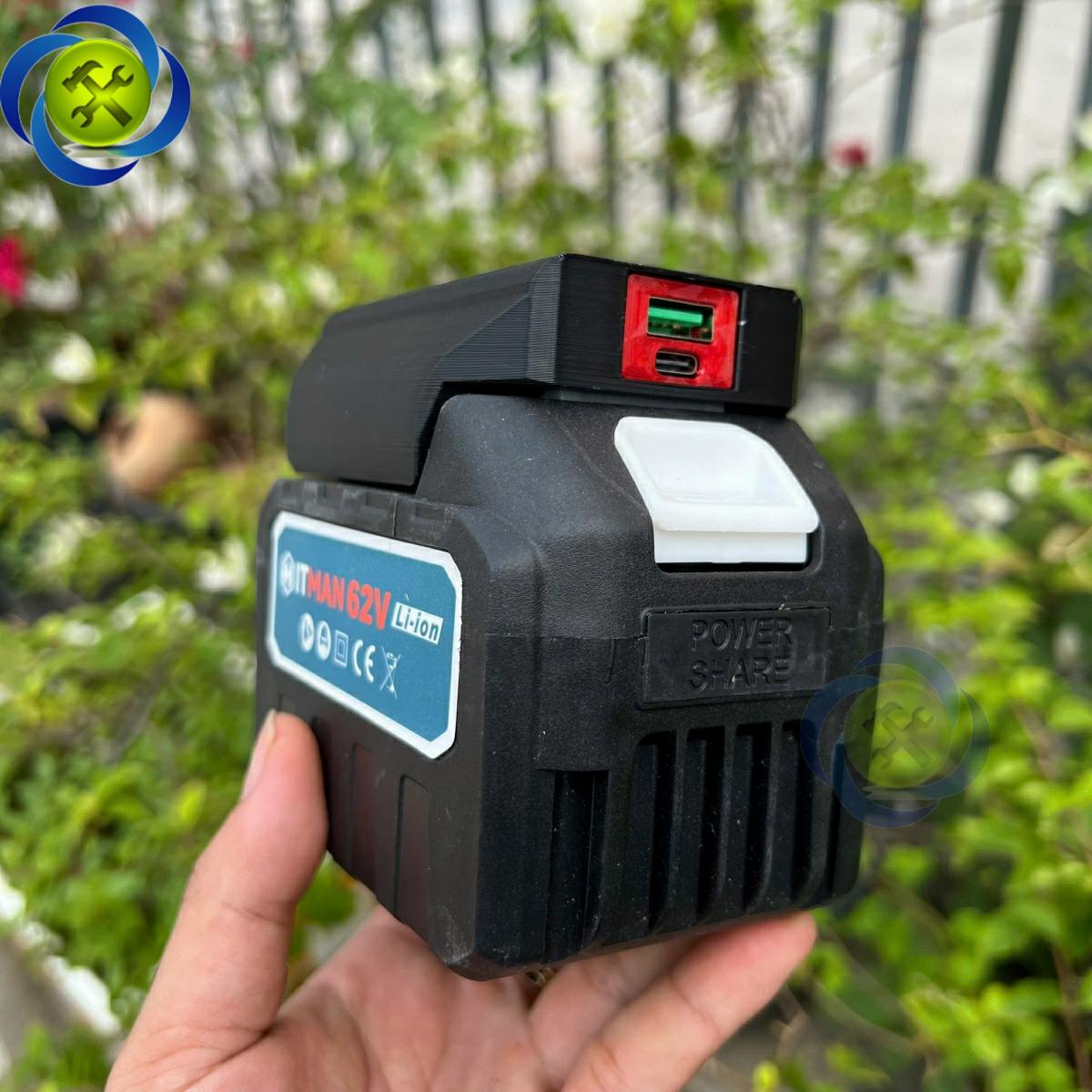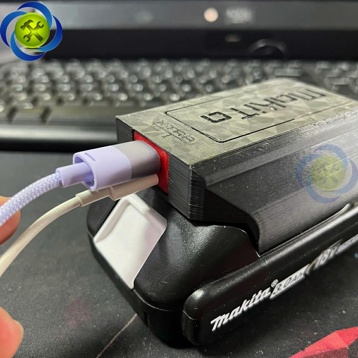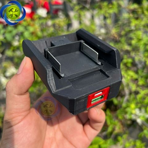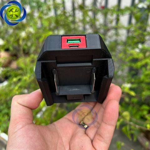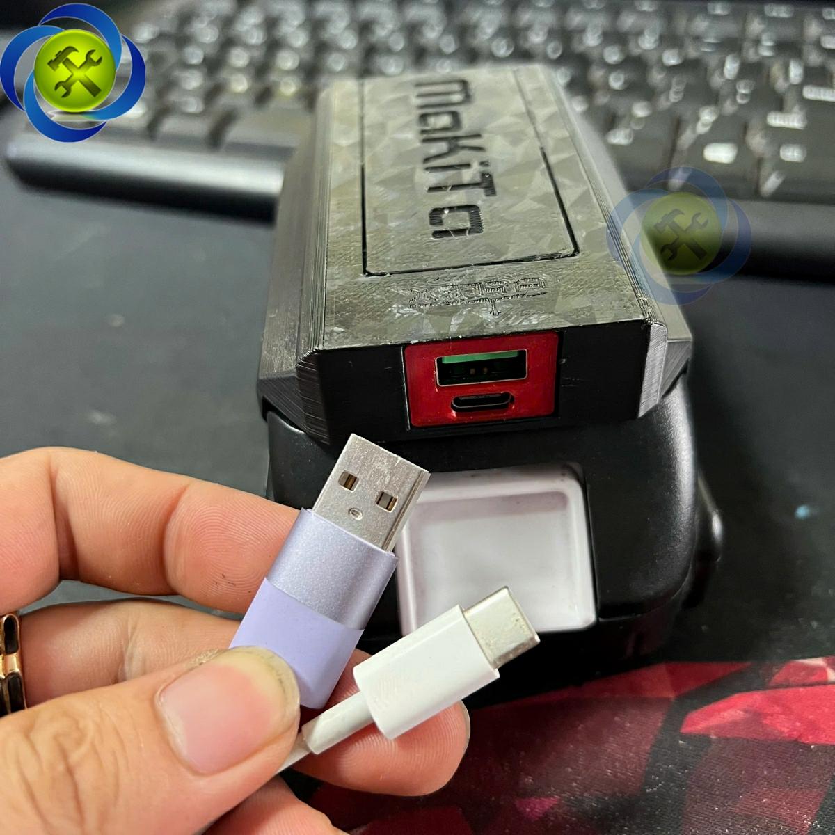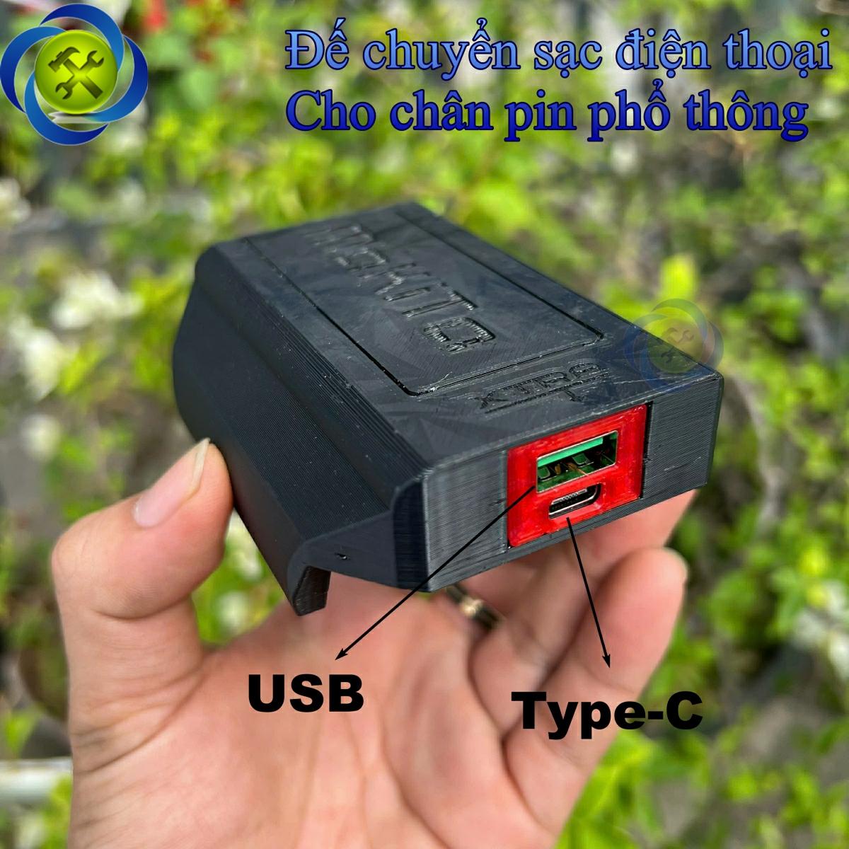 Đế chuyển gắn chân pin phổ thông dùng để sạc điện thoại, các thiết bị điện tử (lỗ ra USB và type - C) MAKITA XTRA