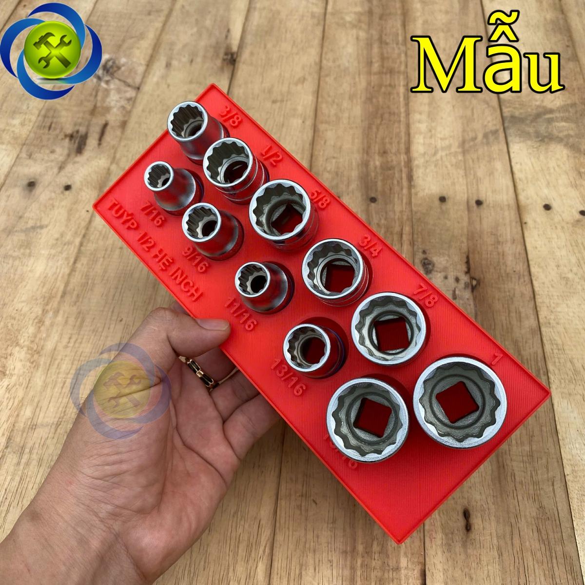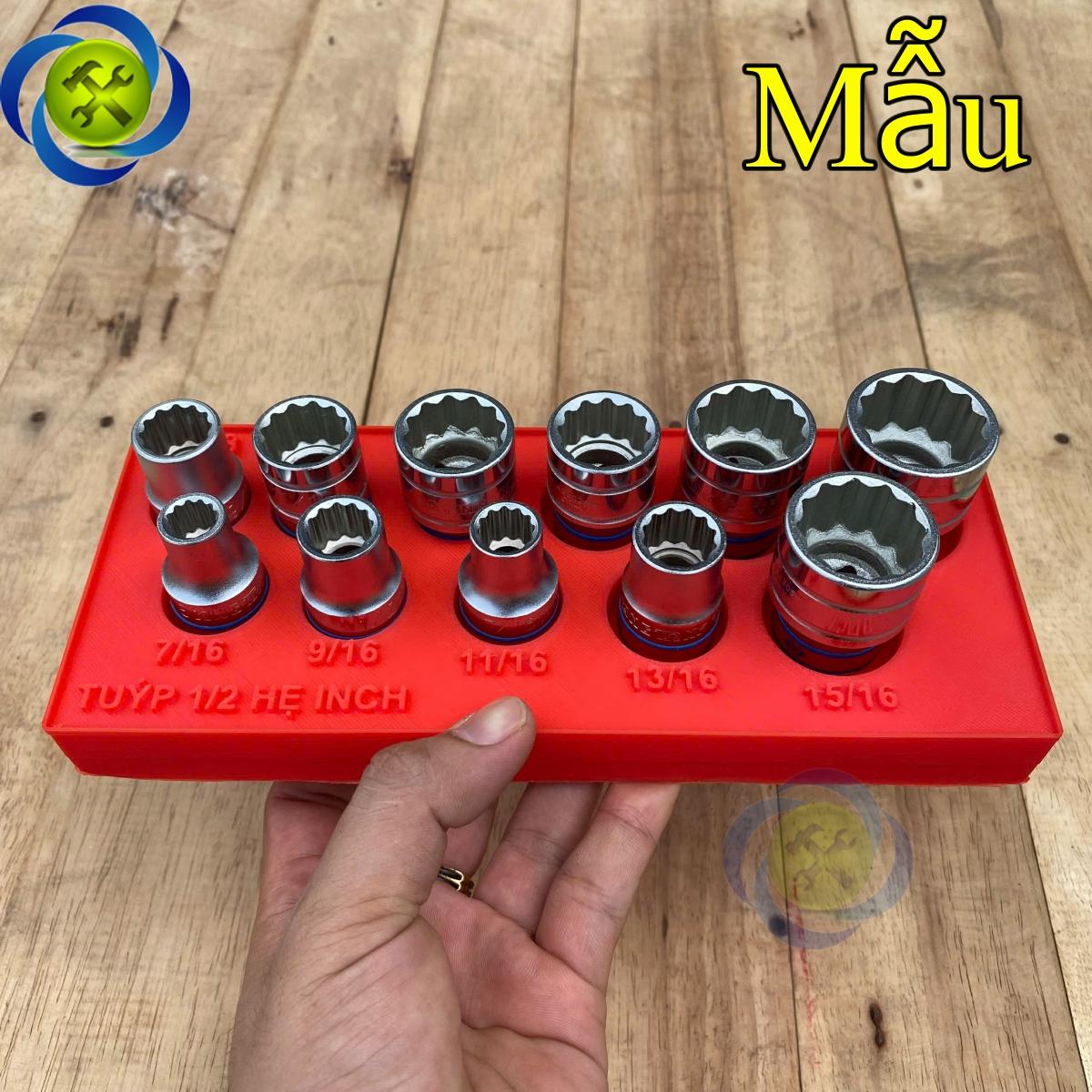 - Giúp sắp xếp các đầu tuýp hệ 1/2 inch gọn gàng ngăn nắp tránh bị thất lạc
