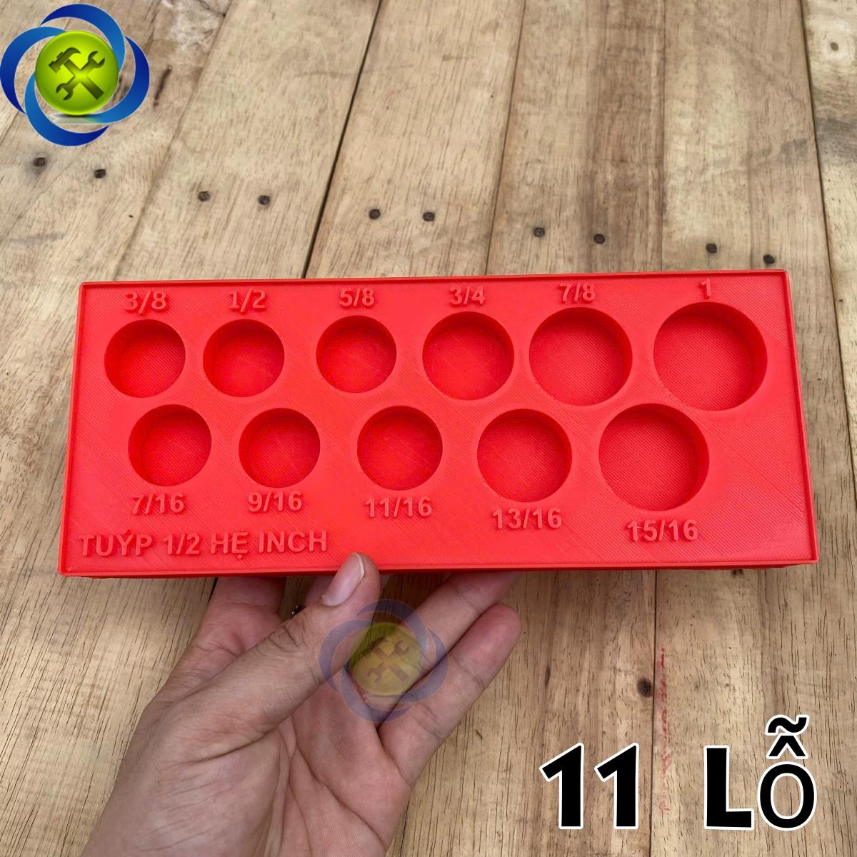 Đế nhựa để đầu tuýp 1/2 hệ inch 11 lỗ 3D-12INCH kích thước 220x90x24mm màu đỏ