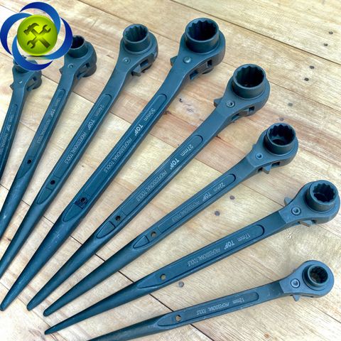 - 10x12 , 12x14 , 13x17 , 14x17 , 17x19 , 17x21 , 19x21 , 19x22 , 19x24, 22x24, 24x27, 24x30 , 27x30 , 30x32 , 32x36 , 36x41mm - Cần xiết có thể đảo chiều xiết hoặc mở bu lông