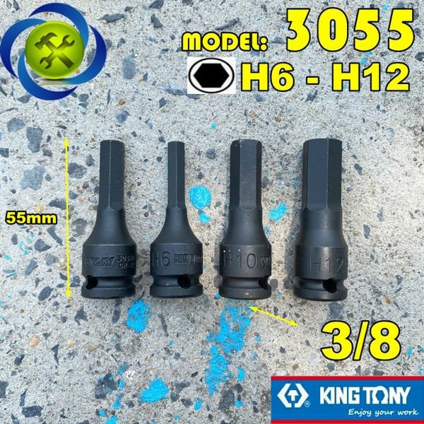 (ĐỦ SIZE) Tuýp lục giác Kingtony 3055 loại 3/8 loại đen thép CR-MO