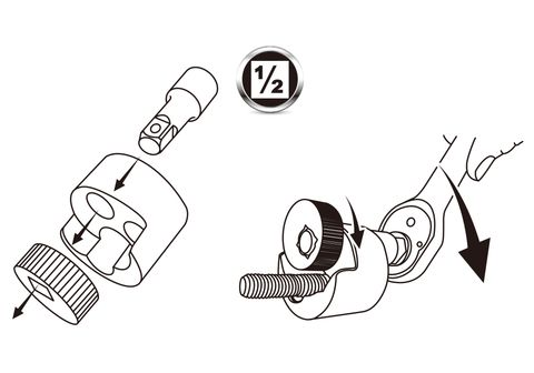 Xoay vắt bằng bánh cóc, cờ lê hoặc ổ cắm để gắn cam và chốt, sau đó rút chốt ra