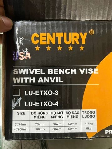 - Êtô xoay thương hiệu Century, xuất xứ từ Trung Quốc, được chế tạo bằng gang tốt, có độ cứng cao