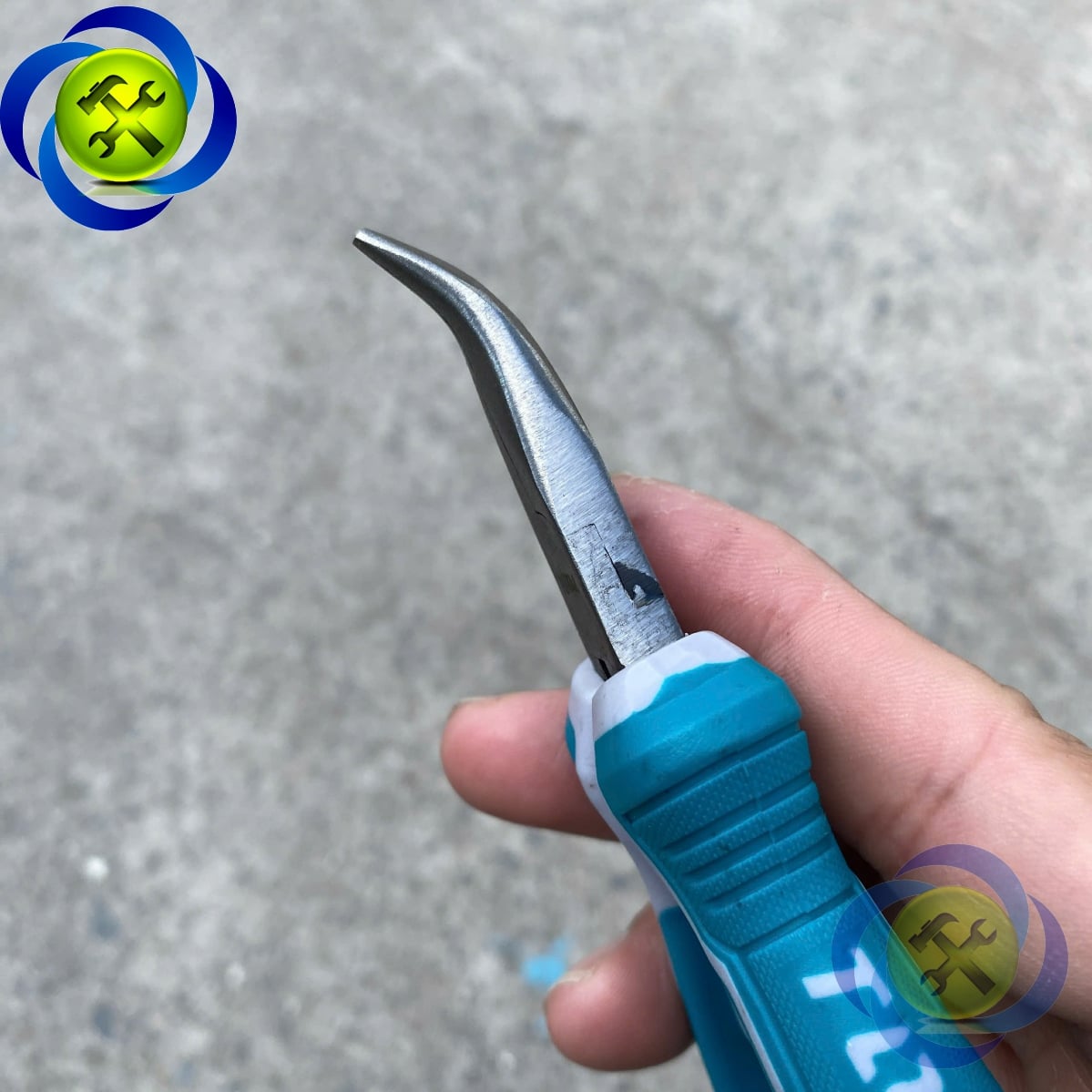 Đầu kềm: Đầu mũi cong giúp tiếp cận các vị trí khó, phù hợp cho sửa chữa linh kiện nhỏ, điện tử, cơ khí nhẹ.