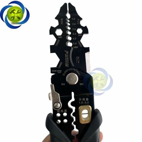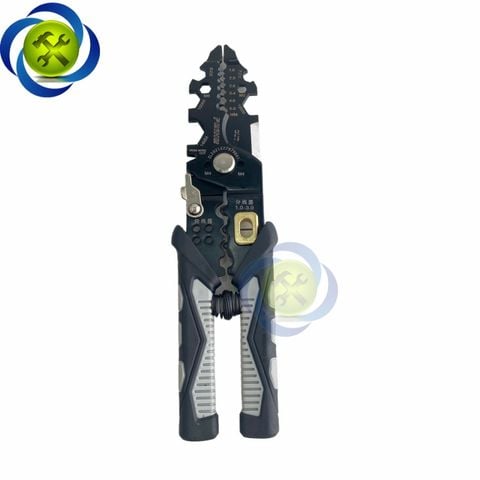 Kìm tuốt dây điện, bấm cos, cắt dây đa năng cán bọc nhựa xám đen