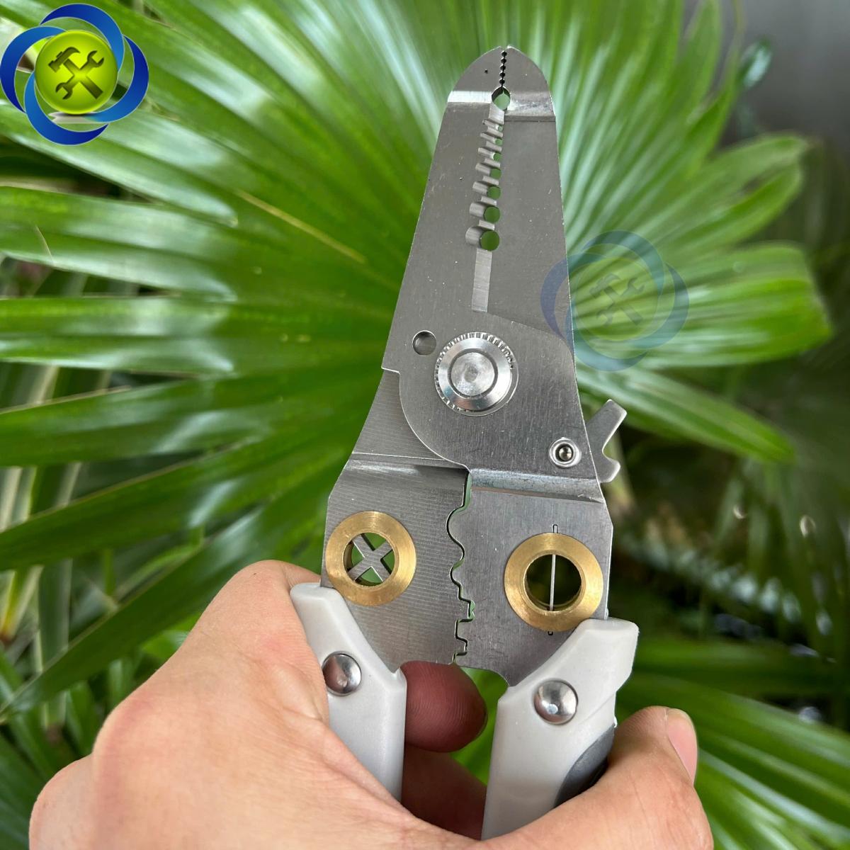 Chức năng đa năng: Cắt dây: Kìm có khả năng cắt dây điện, dây cáp, dây kim loại, v.v. Tuốt dây: Kìm có phần lưỡi tuốt dây (chức năng tuốt vỏ dây điện) với các kích cỡ khác nhau, giúp tuốt dây dễ dàng mà không làm hư hại lõi đồng bên trong. Uốn dây: Có chức năng uốn dây kim loại, dây điện một cách dễ dàng nhờ phần đầu kìm được thiết kế đặc biệt. Bấm cos: Kìm tích hợp chức năng bấm cos để kết nối các đầu dây với đầu cos (có thể là đầu cos đồng, nhôm, hoặc các loại khác), đảm bảo tiếp xúc điện tốt.