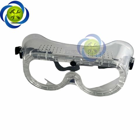 Công dụng: Chống bụi và mảnh văng bắn từ mọi phía vào mắt. Đăc điểm: Khung bằng nhựa dẻo PVC. Mắt kính bằng Polycarbonate trong suốt có khả năng chống tác động va chạm cao. Các lỗ tròn trên thân kính có tác dụng thông thóang, tránh đọng mồ hôi làm mờ mắt kính.