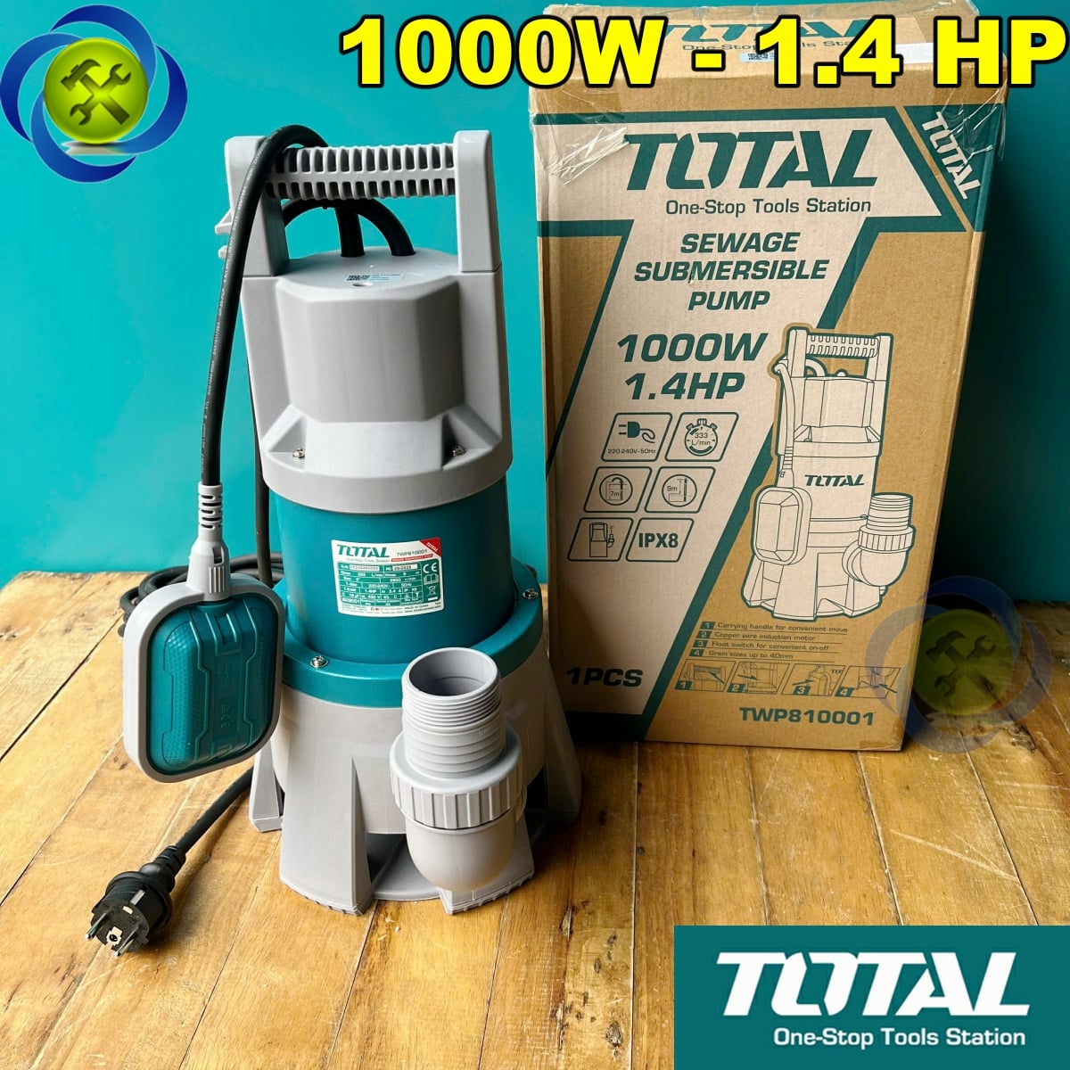 Công suất 1000 W, lưu lượng cao, thích hợp bơm hố ga, bể chứa, tầng hầm.