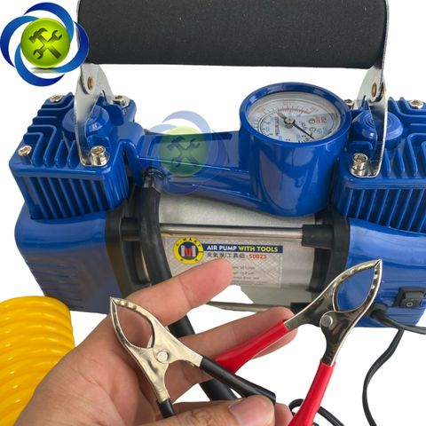 Dây khí lò xo 1m kèm theo, đây kẹp bình ắc quy 3m sẽ đảm bảo kéo máy bơm đến các bánh xe.