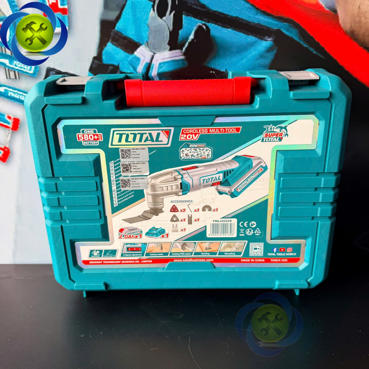 Phụ kiện kèm theo: pin 2.0 Ah (model TFBLI20011), sạc (TFCLI2001), lưỡi cưa, lưỡi cưa đoạn, lưỡi cạo, đế chà nhám, giấy nhám, chìa lục giác