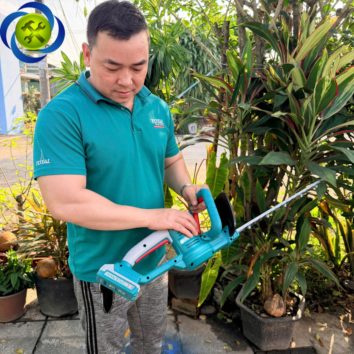 Máy dùng để tỉa hàng rào, bụi cây, cây cảnh, cành nhỏ – trung bình: phù hợp cho sân vườn, nhà riêng, biệt thự hoặc công việc cảnh quan.