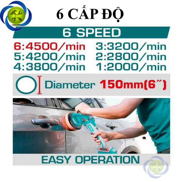 Máy đánh bóng TOTAL TAPLI42151 không chổi than dùng pin 42V- Mô tơ không chổi than.