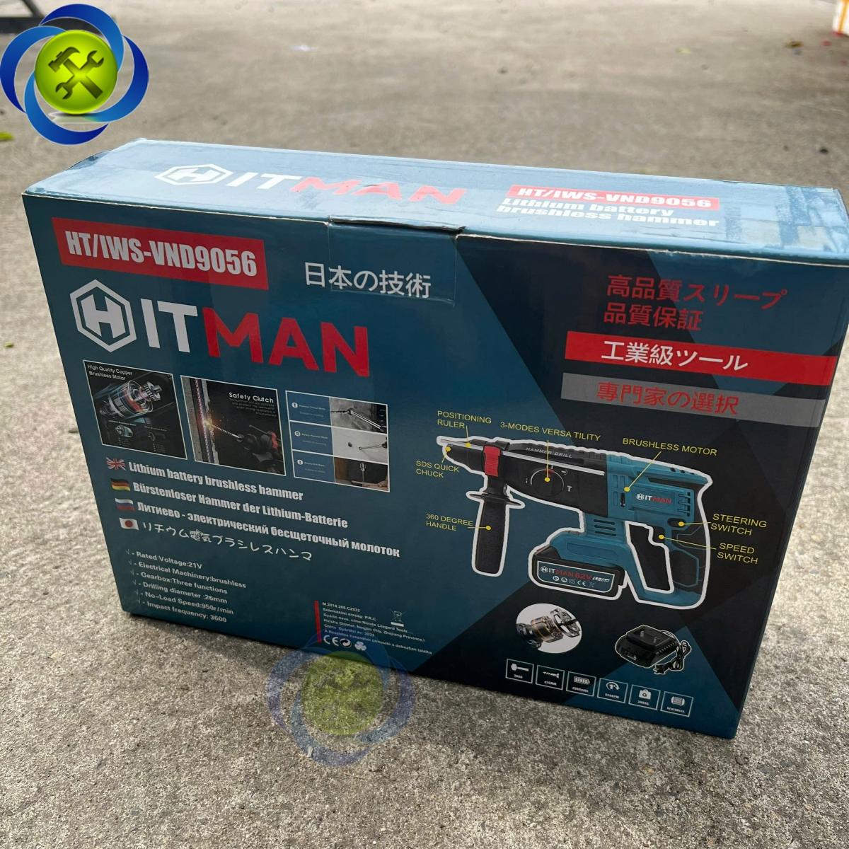 Máy khoan bê tông 3 chức năng dùng pin HITMAN VND-9056 (1 pin +1 sạc) động cơ không chổi than