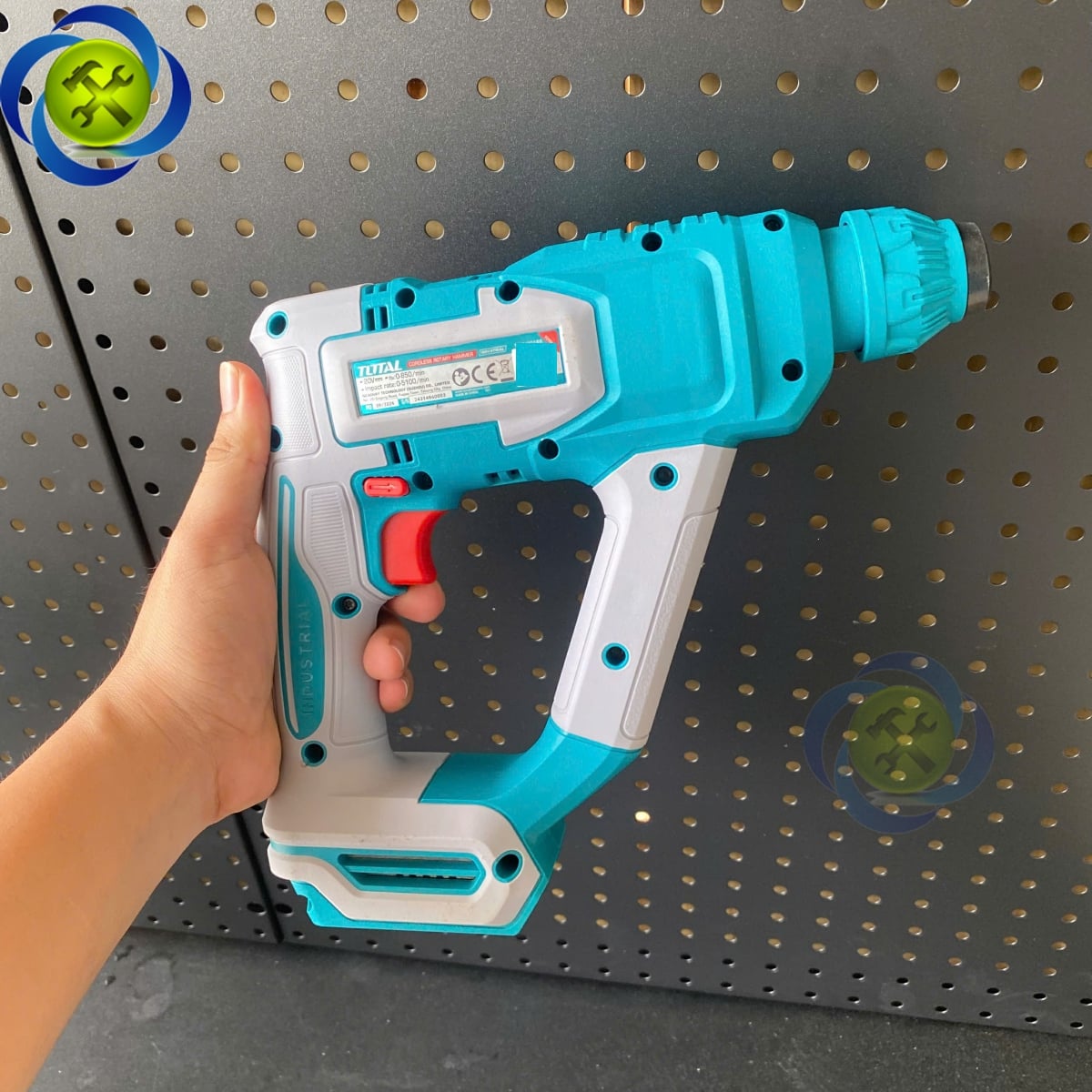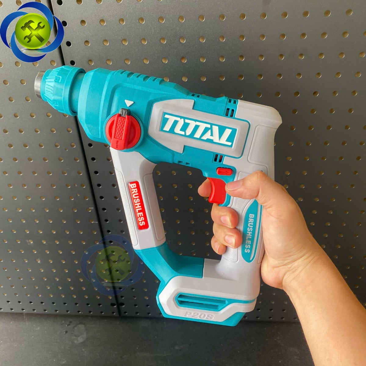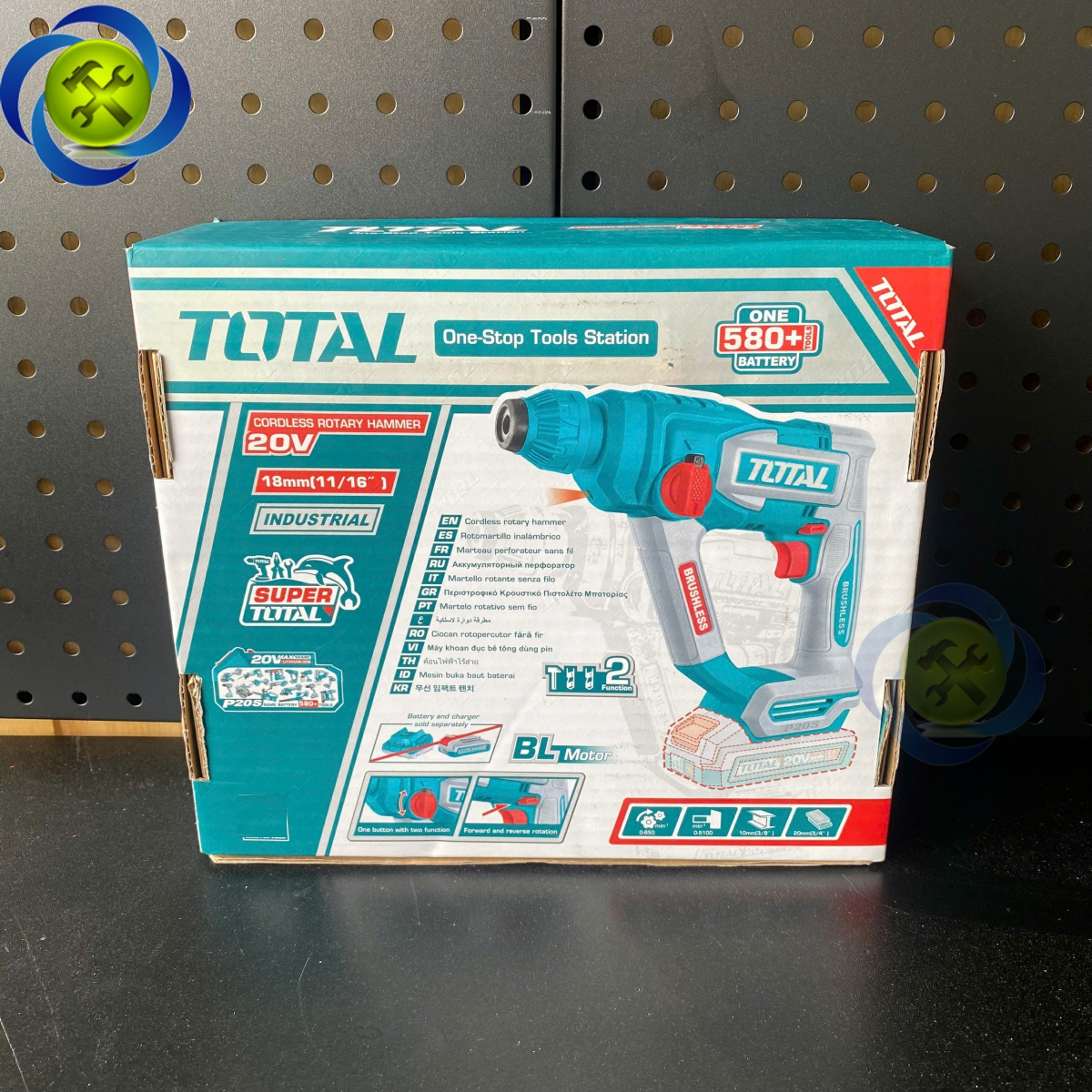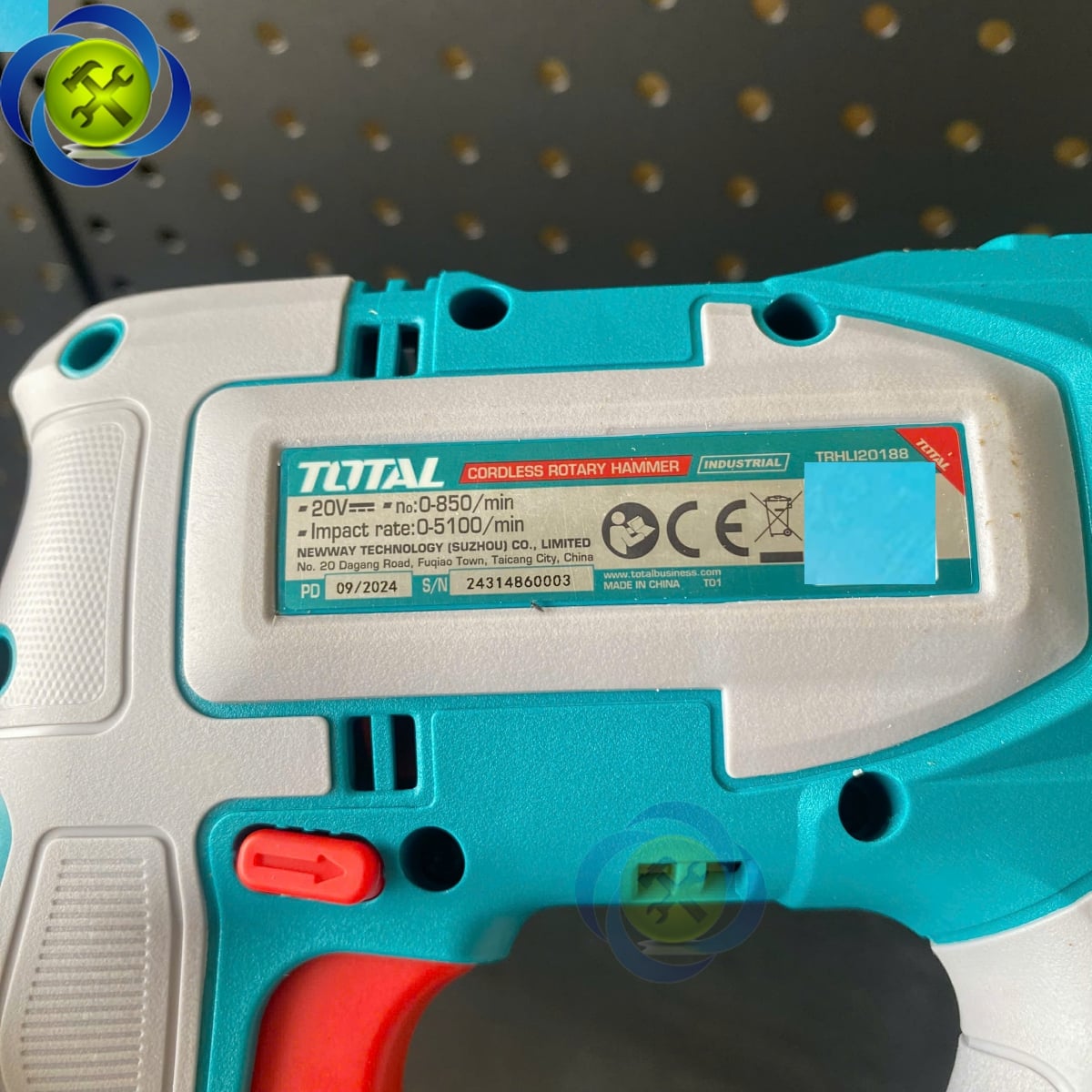Máy Khoan Bê Tông Dùng Pin 20V TOTAL TRHLI20188 (chỉ thân máy)TOTAL TRHLI20188 là model máy khoan động lực dùng pin 20V của thương hiệu Total, có động cơ không chổi than, lực va đập 1.8J và đầu SDS Plus, cho phép khoan bê tông đến đường kính 18mm. Máy được thiết kế để sử dụng đa vật liệu trong công việc sửa chữa và xây dựng gia đình hoặc công trình.