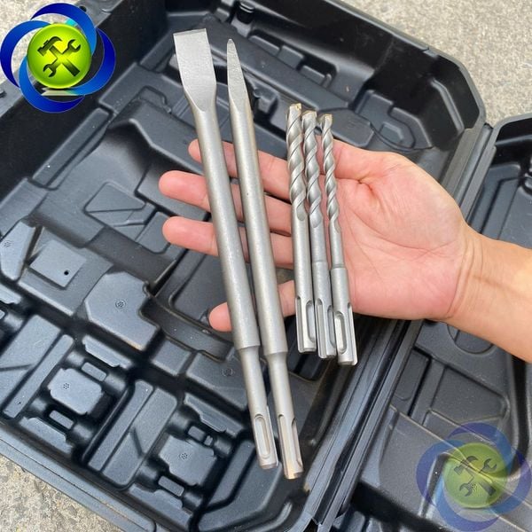 Phụ kiện kèm theo: thường gồm 3 mũi khoan và 2 mũi đục