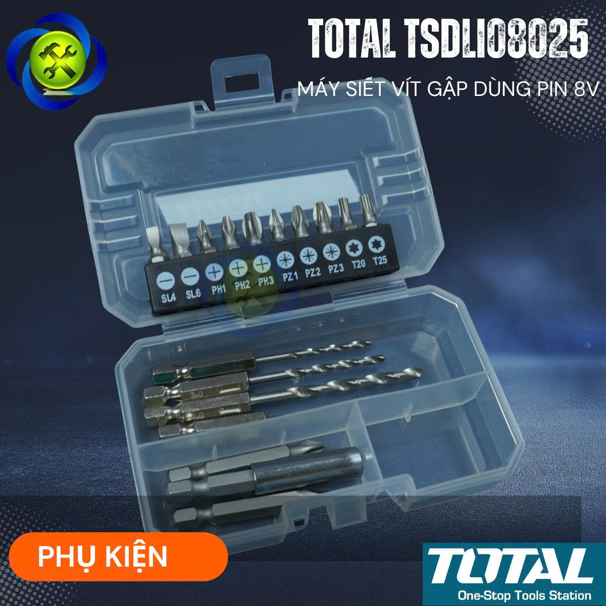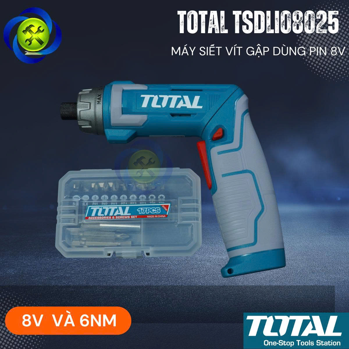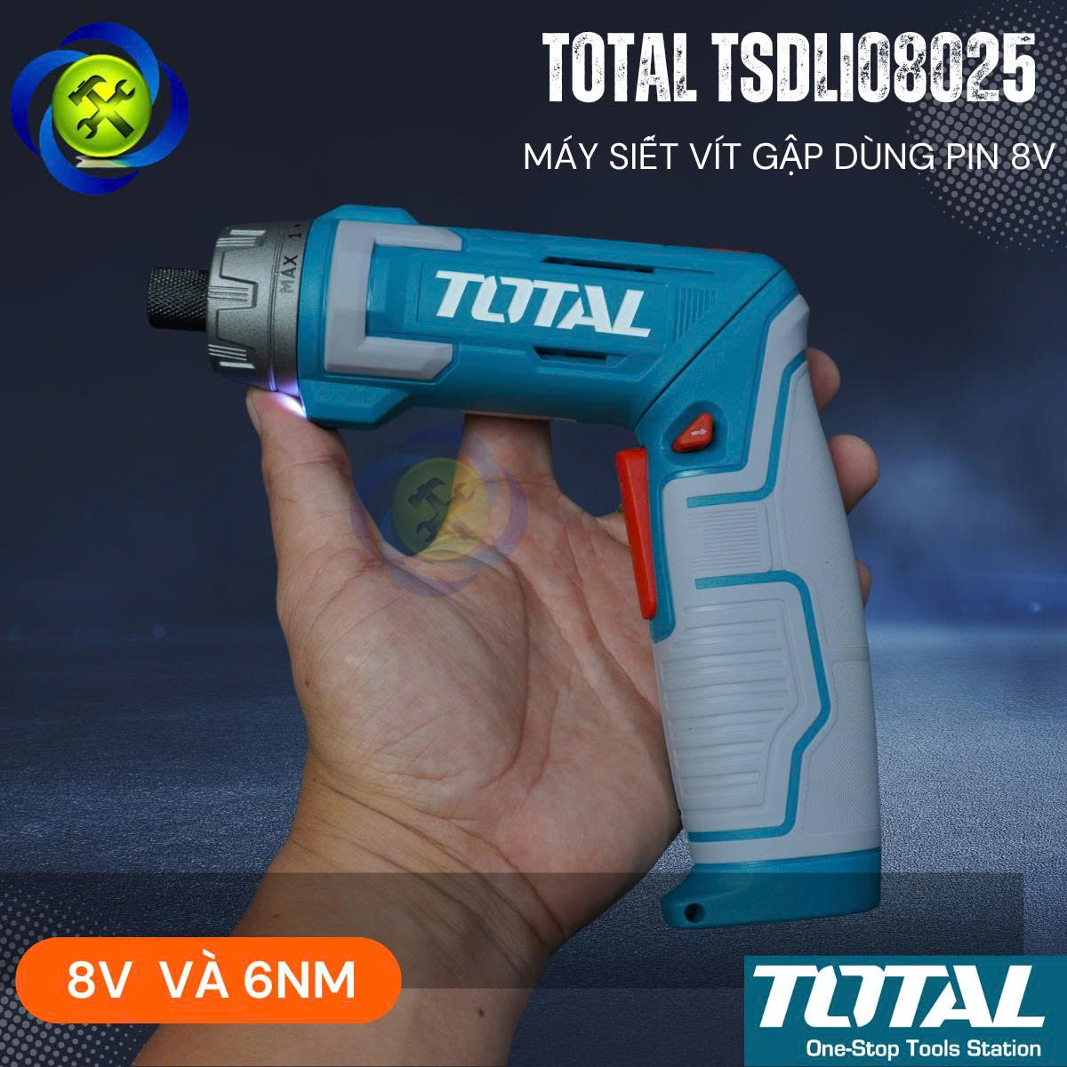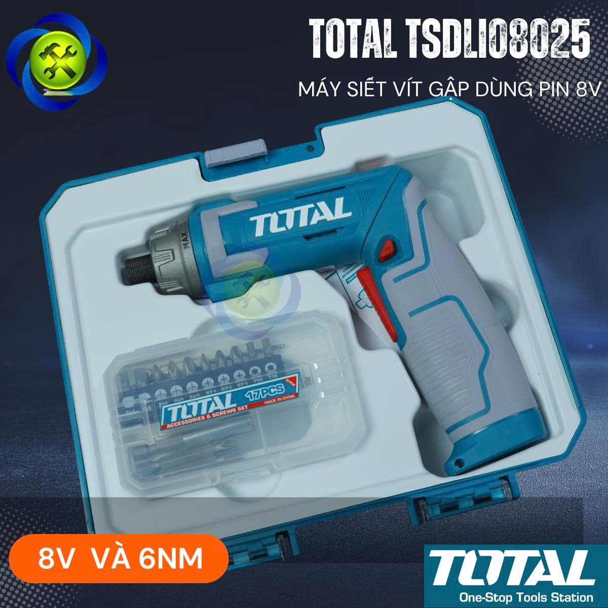 Máy Siết Vít Gập Dùng Pin 8V TOTAL TSDLI08025 Có Cấp Trượt (Kèm mũi vít)