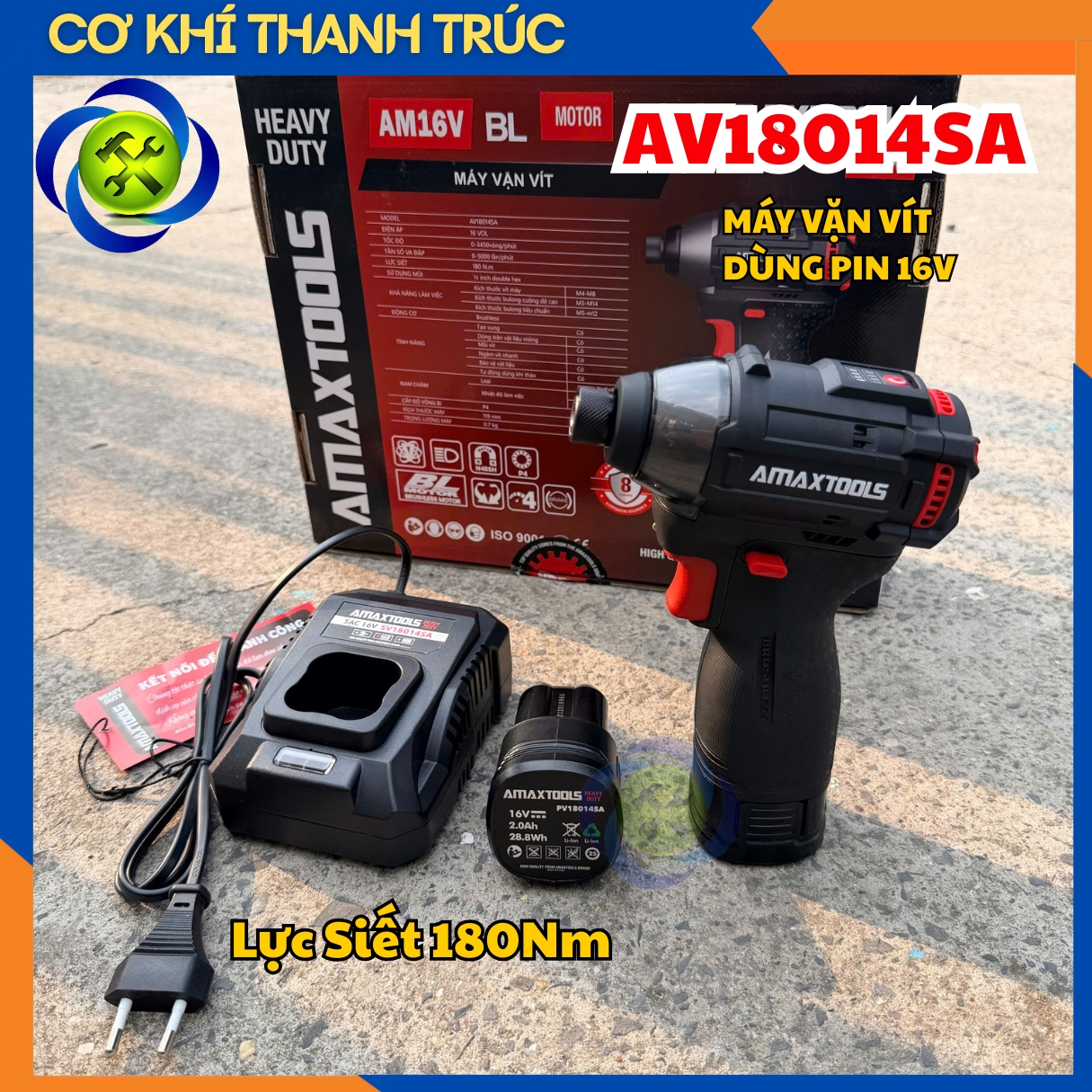 Máy Vặn Vít Dùng Pin 16V Amaxtools AV18014SA Lực Siết 180Nm (2 Pin 2.0Ah, 1 Sạc)