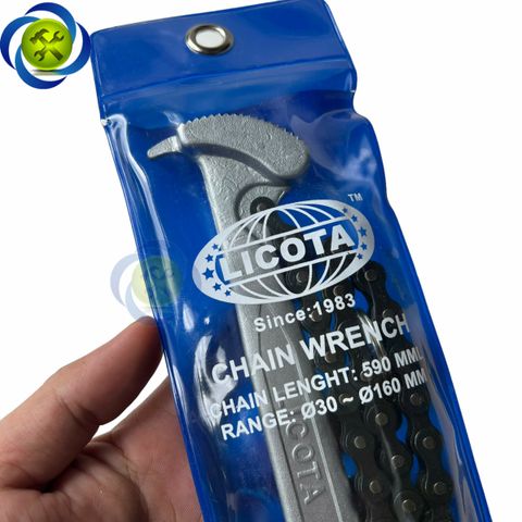 - Cảo dây xích hiệu Licota được sản xuất tại Đài Loan, và được thiết kế rất tiện dụng, có thể tăng giảm đường kính mở từ 30mm đến 160mm
