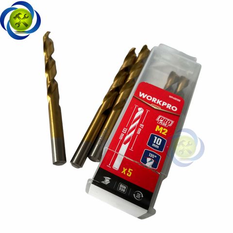 Mũi khoan sắt 10mm chuôi tròn thép HSS Workpro WP400188 (5 mũi hộp)