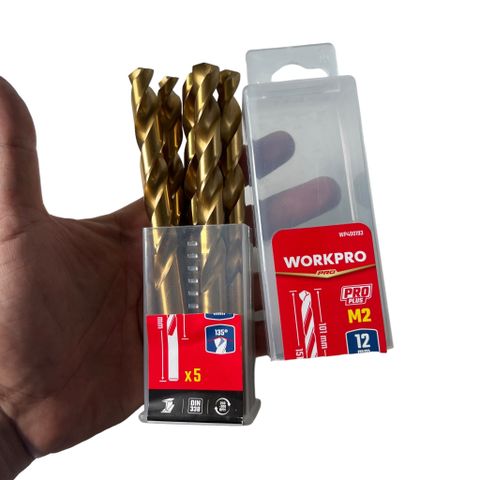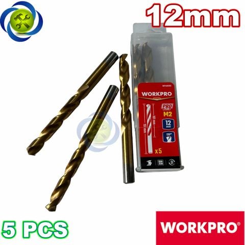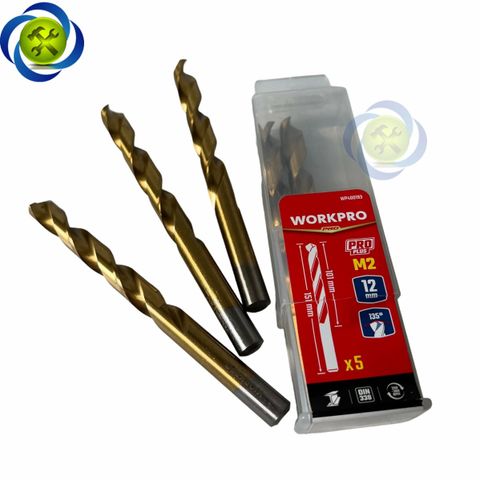 Mũi khoan sắt 12mm chuôi tròn thép HSS Workpro WP400193 (5 mũi hộp)