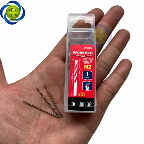 Mũi khoan sắt 1mm chuôi tròn thép HSS Workpro WP400150 (10 mũi hộp)