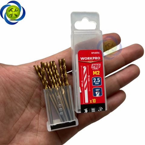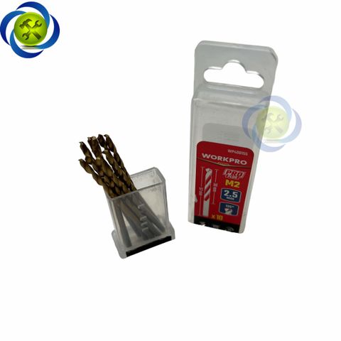 Mũi khoan sắt 2.5mm chuôi tròn thép HSS Workpro WP400155 (10 mũi hộp)