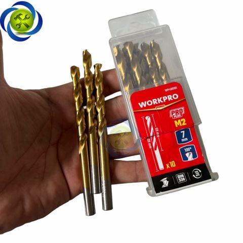 Mũi khoan sắt 7mm chuôi tròn thép HSS Workpro WP400181 (10 mũi hộp)