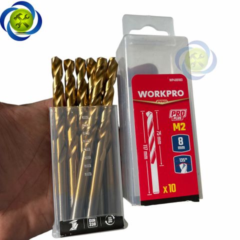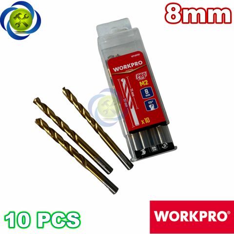Mũi khoan sắt 8mm chuôi tròn thép HSS Workpro WP400183 (10 mũi hộp)