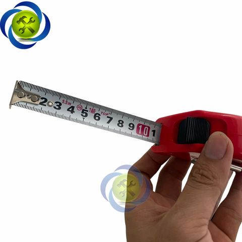 - Nút giữ được thiết kế phí dưới phù hợp với ngón trỏ giúp người dùng có thể giữ thước giúp hạn chế thu lưỡi quá nhanh gây hỏng thước.