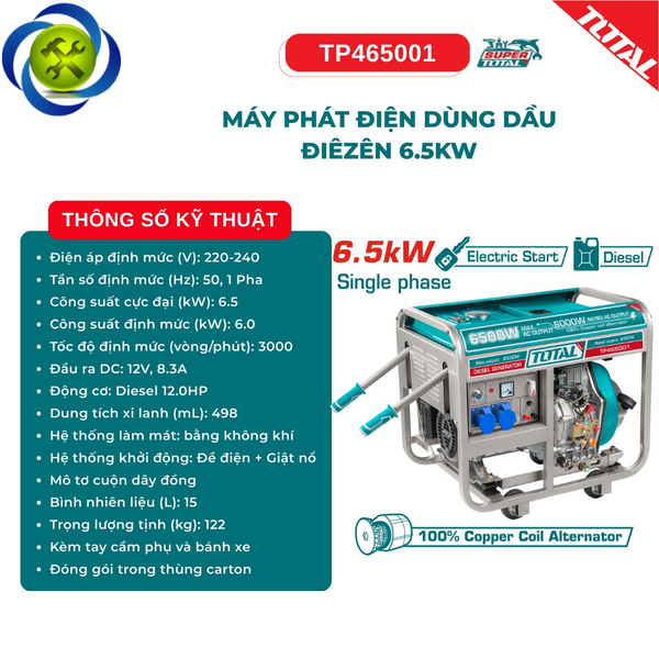Động cơ: Diesel, xi-lanh đơn, làm mát bằng không khí